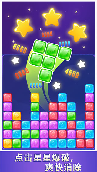 1、点击相邻的同色方块,连消三个及以上完成消除,积累得分推进关卡进度。