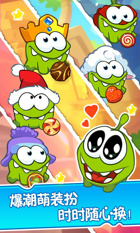 1、核心操作为手指划屏切断绳索,让糖果沿物理轨迹落入奥姆口中完成通关。