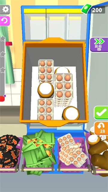 3、极限收纳挑战,在限定容量内尝试塞入更多物品,挑战空间利用的极致策略。