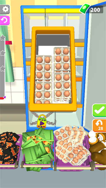 冰箱陈列师是一款主打收纳整理的休闲模拟游戏,以3D卡通画风还原了真实的冰箱收纳场景,让玩家化身陈列师,将各类零散物品有序放入冰箱的收纳盒中。游戏提供了丰富的关卡与物品类型,从零食饮料到生鲜食材,每一关都需要你通过合理规划空间、调整摆放方式,在有限容量里塞进更多物品,同时保持冰箱的整洁美观。随着关卡推进,物品的形状与数量会不断升级,你可以用通关奖励解锁新冰箱与装饰贴纸,打造专属的精致冰箱陈列。