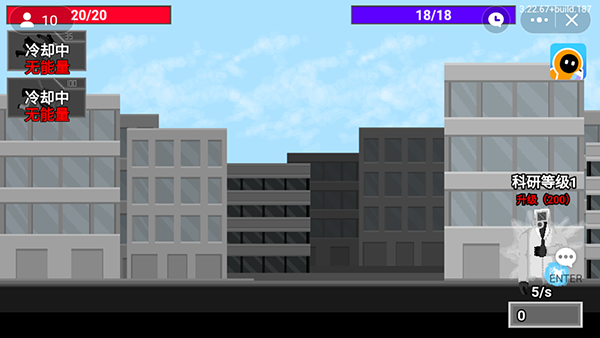 3、右下角是你的能量,监控人需要能量才能派出,能量可以自动增长,你可以点击升级,它可以让你的能量增长变快。