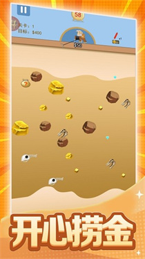 1、高清卡通画风搭配经典音效,金块钻石抓取反馈清晰,游戏关卡的沉浸感十足;