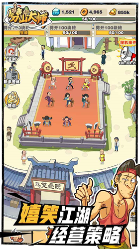 劈山大师是一款以武侠修炼为主题的放置类功夫游戏,用卡通漫画风格还原了江湖武者的修炼日常。你将化身初入山门的弟子,从劈木板开始,通过不断锤炼突破身体极限,逐步挑战劈石板、劈巨石乃至劈山峰的至高境界。游戏融入了轻松诙谐的剧情与搞怪道具,你可以用辣椒提升爆发力,用绷带加速恢复,在爆笑修炼中解锁武侠绝技。除了单人修炼,还能与其他玩家实时PK,比拼劈砍力道与技巧,争夺江湖第一的称号,在充满欢乐的修炼之旅中,圆一场属于自己的武侠梦。