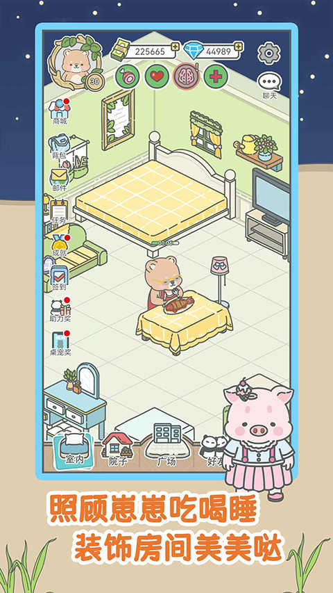 2、玩家需要为宠物搭建小家,提供食物和水,清洁照顾,保持ta的身体和心情健康,不然会生病。整个过程非常有互动感,激发责任心,是非常治愈的一款游戏。