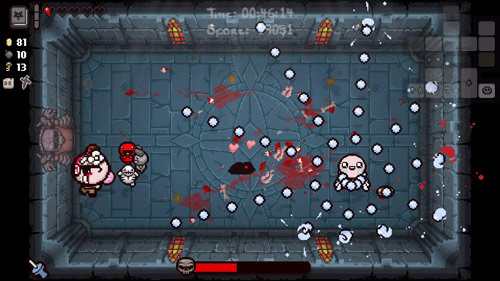 2、操控角色探索随机地牢,通过发射泪弹击败怪物与BOSS,清理房间推进关卡;