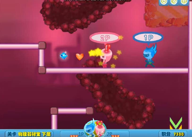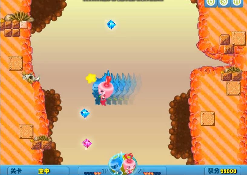 闪翼双星是一款充满怀旧趣味的双人协作闯关游戏,以清新明快的2D卡通风格呈现。你将操控蓝、粉两个灵动的角色,在机关密布的奇幻场景中展开冒险。游戏既支持单人操控双角色挑战,也能邀请好友联机配合,通过精准跳跃、巧妙闪避尖刺、落石与移动平台等各类陷阱,在复杂地形中探索路径、触发彩蛋并解锁隐藏剧情。从初期的新手引导到后期的高难度复合关卡,每一关都暗藏解谜思路,让你在默契配合与灵活操作中,收获闯关的乐趣与成就感。