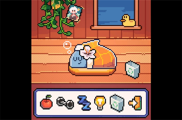 3、进入游戏如图,玩家需要给它喂食,让它锻炼、看它睡觉;