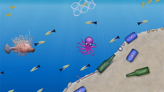 4、通过移动小章鱼进行吃垃圾,时间花的越少评价越高。