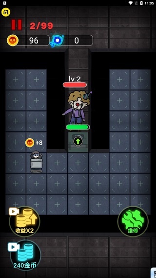 5、在睡觉的时候玩家们可产生金币,通过金币玩家们可升级门、床、以及装备武器;