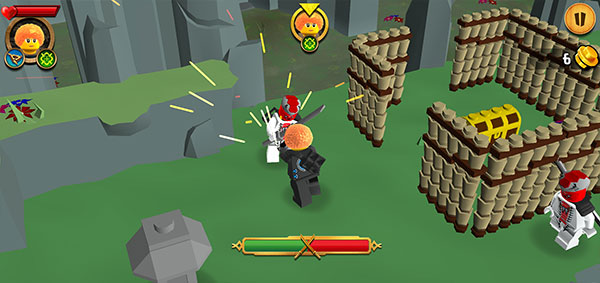 2、虚构道场场景中可操控乐高积木人,还有乐高拼凑的机器人角色。