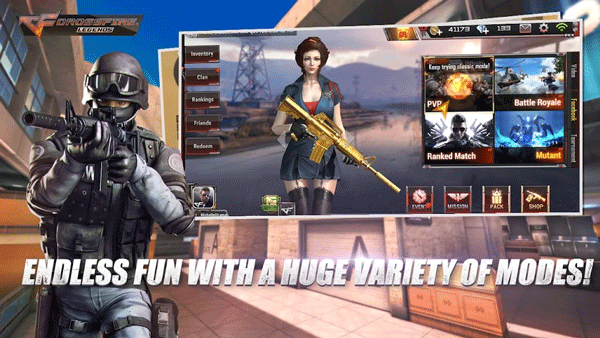 Crossfire Legends国际服经典玩法与创新模式结合,搭配丰富的武器和地图,可玩性拉满。美术与操作的双重优化,带来沉浸式的移动端枪战快感。枪械品类齐全,涵盖突击步枪、狙击枪、冲锋枪等全品类武器及各类投掷物,满足不同作战需求。武器可强化外观、切枪换弹速度等属性,仅提升体验不破坏核心竞技平衡,新回合、复活可自由切换,极限战斗背包适配多场景战术切换需求。