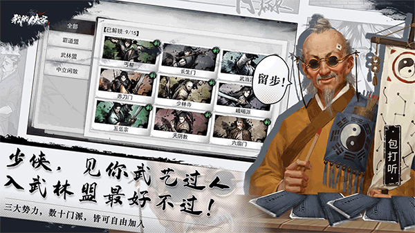 我的侠客是一款沉浸式江湖武侠rpg手游,以水彩水墨画的美学风格,勾勒出一个充满诗意与侠气的武侠世界。玩家将化身自由侠客,在这片江湖中自主抉择人生方向,无论是行侠仗义还是独步武林,都由自己定义。你可以与性格鲜明的NPC结下羁绊,共同闯荡江湖。也可以遍访各门各派,集百家武学之长,创造独属于自己的最强打法。在这个有血有肉的江湖里,每一次选择都将影响你的人生结局,让你真正体验到仗剑走天涯的武侠梦。