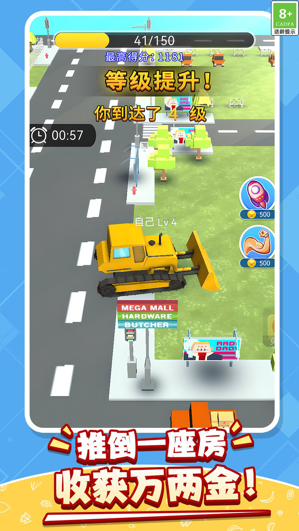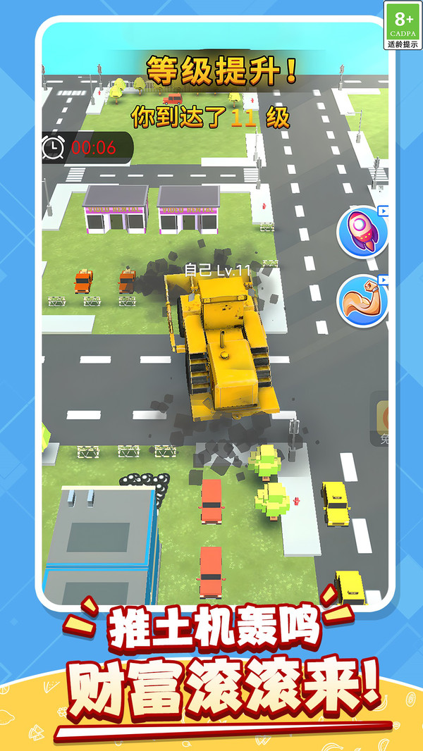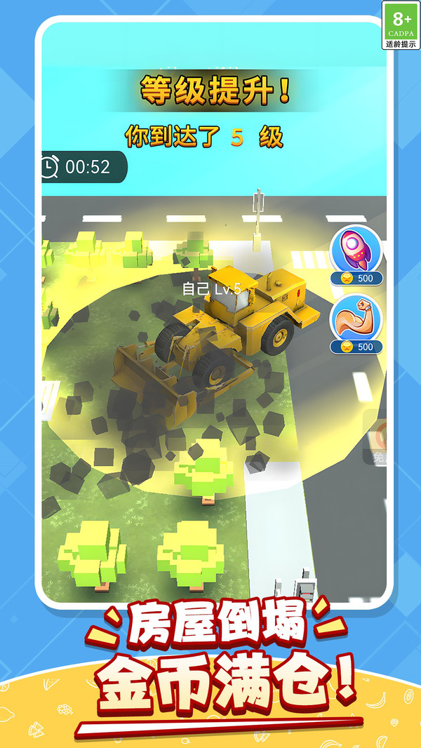 3、关卡挑战:每关设定明确目标,需在限定时间内完成拆除或清理,规避障碍物。