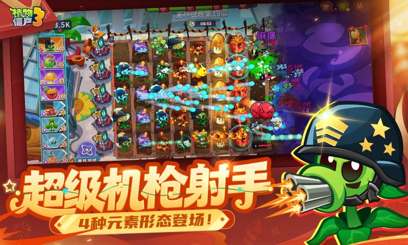 植物大战僵尸3游戏是一款由EA正版出品的经典塔防续作,延续系列轻松幽默风格与核心策略玩法。植物大战僵尸3游戏采用全新3D卡通画面,搭配分集式剧情,玩家跟随疯狂戴夫穿越多元场景,抵御异次元僵尸入侵。数十种新老植物与特色僵尸登场,搭配属性克制、地形互动、家园建造等内容,让经典塔防焕发新生。植物大战僵尸3游戏加入元素进化、坚果防线等全新玩法,推出三款国风植物与中式元素地图,不同僵尸拥有瞬移、电盾等专属属性。玩家可收集元素为植物赋能,搭配阵容抵御僵尸入侵,还能体验吞噬塔爬塔、无尽试炼等挑战模式。