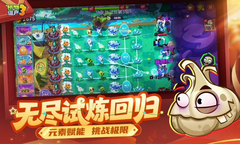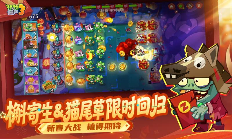植物大战僵尸3游戏元素融合与英雄大招让战术不再单一,动态地形与属性克制大幅提升策略乐趣。剧情设定丰富深刻,以神秘的僵尸迷雾为背景,层层揭开背后的故事,为塔防玩法赋予沉浸式叙事体验。角色设计独具特色,海量新植物、新僵尸登场且各有专属技能,国风植物与新春限定角色更具本土特色。自定义自由度高,从植物阵容搭配到城镇建筑装饰,均可自主选择,打造独一无二的游戏体验。