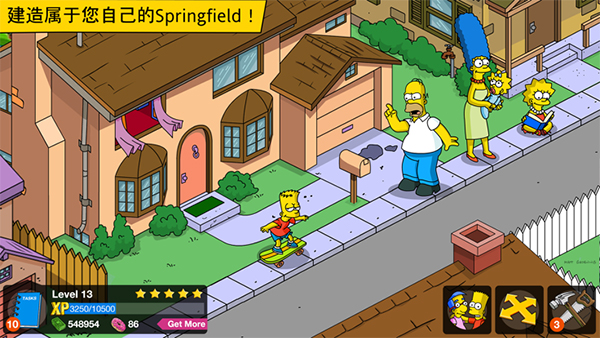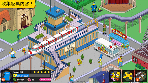 3、自由城镇经营玩法,从建筑布局到角色工作全掌控,将Springfield打造成理想模样。