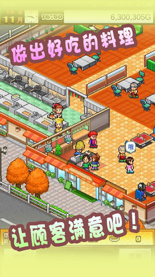 3、完整经营游戏,从食材采购、后厨烹饪到前厅服务、店铺扩张全流程可控。
