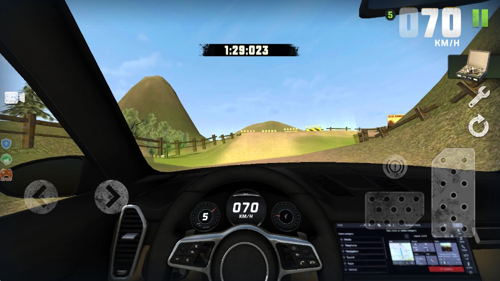 3、逼真场景与音效,引擎轰鸣与山地环境结合,给大家带来沉浸式越野竞速体验。