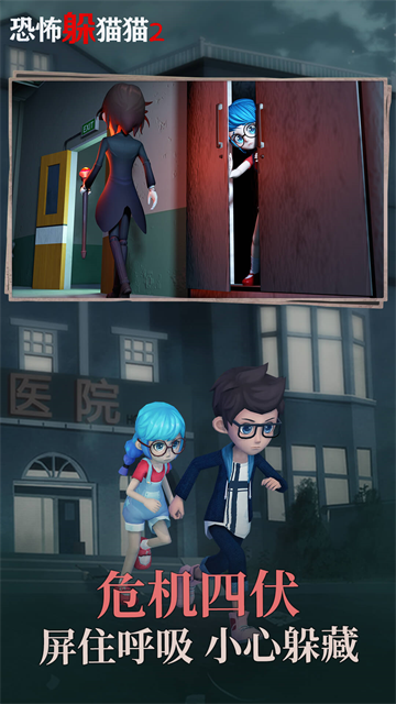 1、阵营对抗挑战,选择狩猎者或躲藏者阵营,在医院中完成追捕或逃生,获取胜利。