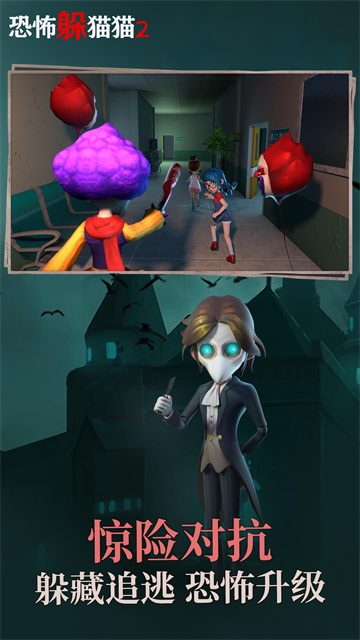恐怖躲猫猫2是一款融合了恐怖、解谜与角色扮演元素的非对称竞技游戏,作为系列续作,恐怖躲猫猫2延续了前作的惊悚氛围,并用高清画面与沉浸式音效,将玩家带入一座危机四伏的城堡。玩家可从多名角色中选择身份,在昏暗的场景中收集宝箱、宝石与钥匙碎片,目标是快速集齐钥匙碎片,打开城堡大门逃离此地。在恐怖躲猫猫2中玩家会遭遇恐怖NPC的追击与捕杀,需要利用隐身药水、发光道具等神奇道具,或利用地形正面应对、或巧妙逃跑,在紧张刺激的对抗中,体验斗智斗勇的逃生乐趣。