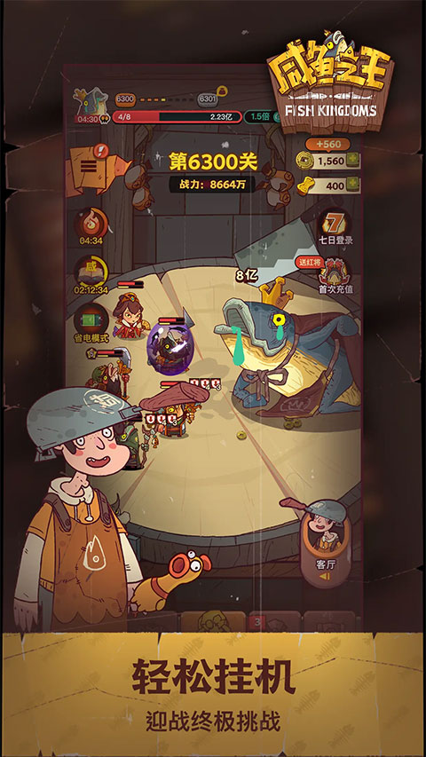 咸鱼之王游戏是一款魔性搞怪画风的三国题材放置挂机手游,玩家化身阿咸,指挥Q版咸鱼造型的三国武将排兵布阵,抵御入侵。游戏以轻松放置为核心,自动战斗、离线收益,无需长时间在线也能稳步成长。咸鱼之王融合卡牌养成、策略对战、爬塔挑战与PVP竞技等多重内容,咸鱼之王游戏的武将阵营丰富,养成体系多元,让玩家在诙谐氛围中体验咸鱼翻身的快乐,咸鱼之王游戏操作简单,支持手动、自动战斗,玩家可搭配咸鱼武将阵容闯关,还有挂机钓鱼、爬塔、国战等丰富玩法。