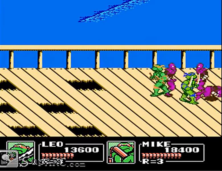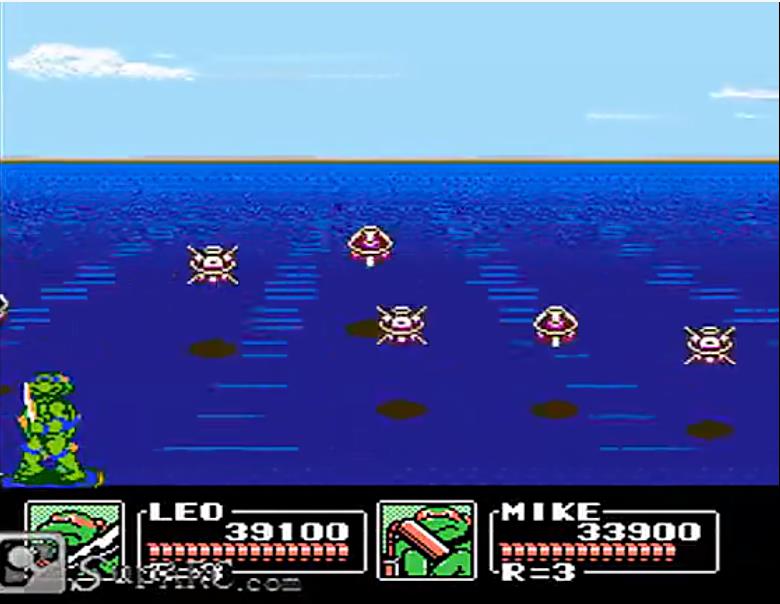 过关技巧:可以站在boss旁边然后使用普通攻击,boss在被攻击时不会攻击忍者龟,不过要注意躲避boss的子弹,一般失去两条性命就可以过关了。