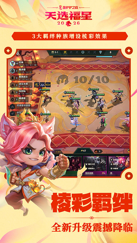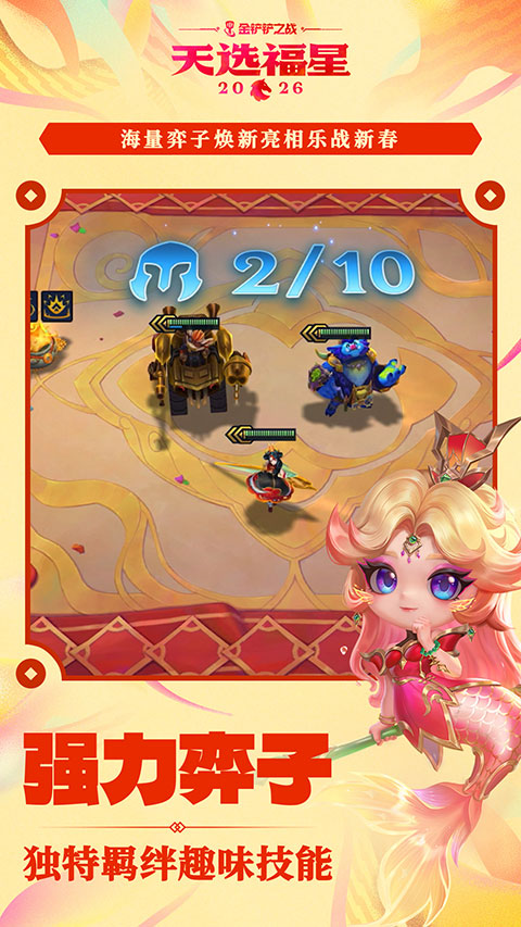 金铲铲之战手游是一款由英雄联盟云顶之弈正版授权的策略自走棋手游,主打8人实时公平竞技。玩家以小小英雄视角出战,通过招募英雄、搭配羁绊、合成装备、调整站位构筑强势阵容,在对战、选秀、野怪三种回合中循环博弈,金铲铲之战游戏以淘汰对手、存活到最后为目标。玩家可收集卡牌构建专属战斗阵容。整个对战场景打造了竞技场、PVP、单人等多元模式,满足不同游玩需求。金铲铲之战手游采用高清3D画质,场景与卡牌制作精致,带来端游级视觉体验。
