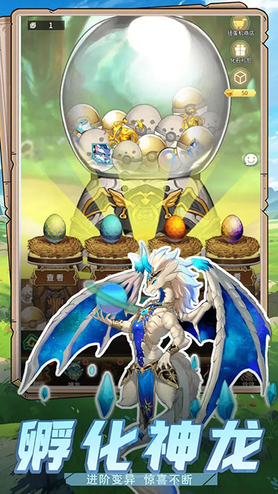 1、神龙收集与养成,通过孵化、进阶等方式提升神龙战力,解锁专属技能与形态。