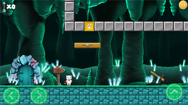 1、核心为横版跳跃闯关,操控猫咪跳跃前进,躲避陷阱与怪物抵达关卡终点。