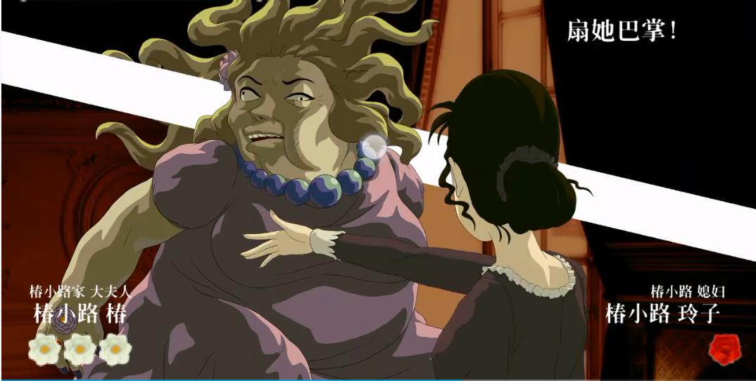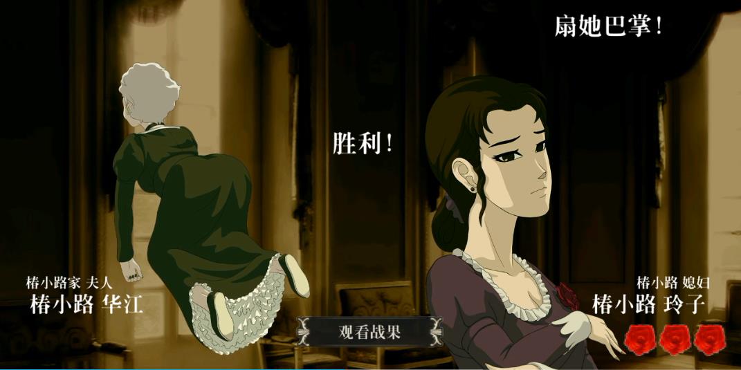 蔷薇与椿用最直白的扇巴掌形式,演绎出豪门宅斗里的阶级压迫与女性觉醒,在一众复杂玩法中显得格外醒目。复古的手绘美术与昏暗色调,奠定了游戏暗黑戏剧的基调,角色的服饰、神态与场景布置都透着近代名门的压抑感,每一次掌击的音效与画面震颤,都让对抗的冲击力被无限放大。