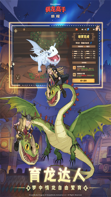驯龙高手旅程是一款建造养成游戏,以维京时代为核心舞台,开启一段充满热血与温情的全新冒险。在驯龙高手旅程中,你将深入维京世界的各个角落,邂逅外形与能力各异的飞龙,通过耐心互动完成驯服,将它们纳入自己的驯龙小队,一同参与紧张刺激的天空竞技赛,对抗觊觎博克岛的外敌,守护这片熟悉的海岛家园。在驯龙高手旅程探索神秘生物、完成惊险任务的过程中,你需要不断打磨驯龙技巧,与龙族建立跨越物种的深厚羁绊,亲手推动博克岛走向繁荣,续写属于自己的驯龙传奇。