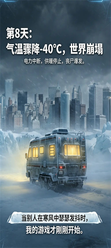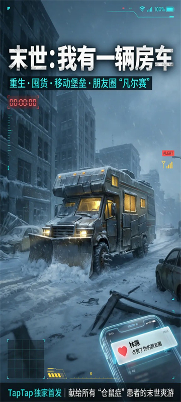 末世我有一辆房车是一款以末日倒计时为核心的生存模拟游戏,玩家将在极寒末世降临前的7天里,凭借重生记忆与启动资金,完成物资囤积、房车改装与资源布局,从容迎接灾难。末世我有一辆房车摒弃了传统末世的压抑求生路线,主打极致准备+安逸生存的反差体验。你可以像玩俄罗斯方块一样塞满仓库,把破皮卡进化成移动堡垒,还能在末日朋友圈里用讽刺互动应对社交烦恼。在末世我有一辆房车极寒断电、秩序崩塌的世界里,你将过上物资充裕、温度恒定的舒适生活。