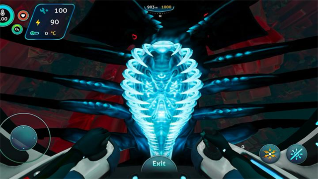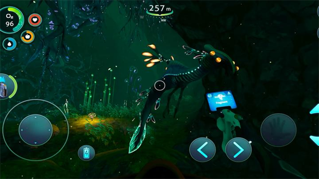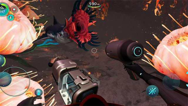 3、生物交互,观察巨型海洋生物习性,规避危险或利用友善生物,完成深海探险的任务。