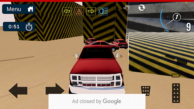 3、进入游戏后,左边的按钮控制车辆的左右移动,而右边的控键则是刹车和油门;
