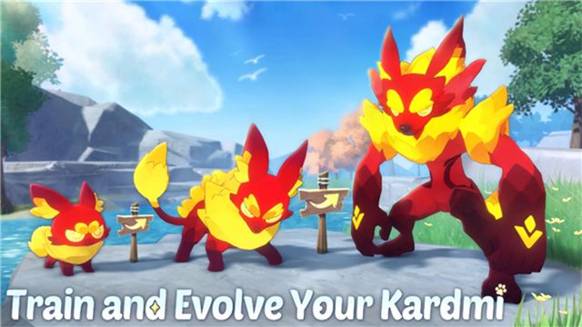 Kardmi创新的属性反应机制则让战斗脱离了简单的克制循环,每一次属性搭配都可能触发意想不到的效果,既考验玩家的策略储备,也让每一场对决都充满新鲜感与变数。快节奏无PP限制的战斗模式则精准适配了当下玩家的游戏节奏,避免了传统宝可梦类游戏的冗长感,让对战更爽快、更高效。