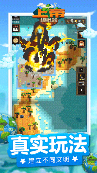 2、多维度的世界交互,既能创造各种风景、改变地形,也能与生物及文明进程进行深度互动。