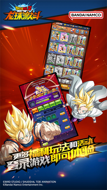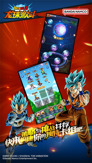 1、卡牌养成,收集龙珠经典战士,通过升级、突破、天赋等系统强化角色,打造专属战队。