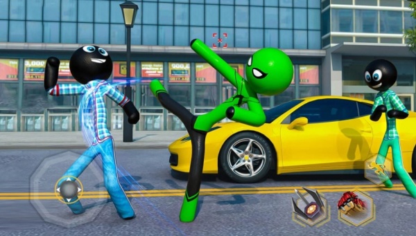 1、操控火柴人在都市中自由探索,追踪邪恶势力踪迹,主动发起战斗,守护城市安全。