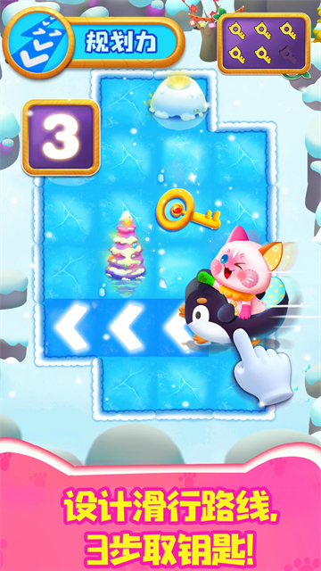 3、规划力关卡分步设计滑行路线,3步取钥匙,锻炼孩子的逻辑规划能力。