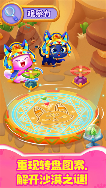 2、观察力关卡仔细观察细节,重现转盘图案,解锁沙漠谜题的隐藏线索。