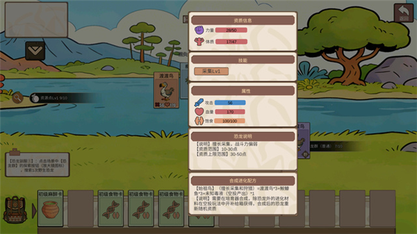 2、前期比较重要的物资是浆果和肉类,优先驯服渡渡鸟和鮟鱇鱼,这两种恐龙还可以合成进化为始祖鸟,并不断进化新的恐龙。