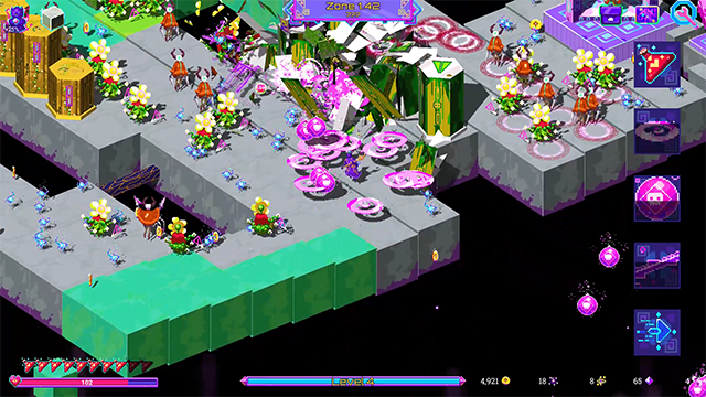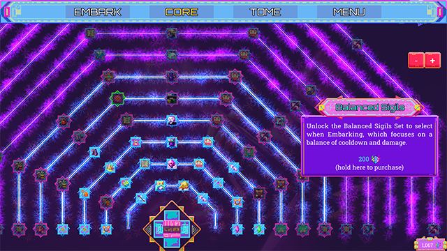 2、永久进度养成体系,用收集的资源投资霓虹核心,解锁新法术与能力,逐步提升角色强度。