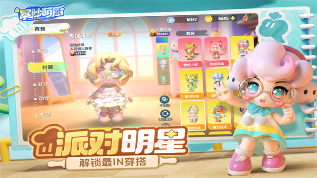3、穿搭与派对玩法丰富,可以解锁多样风格造型,在厨房派对中成为焦点趣味十足。