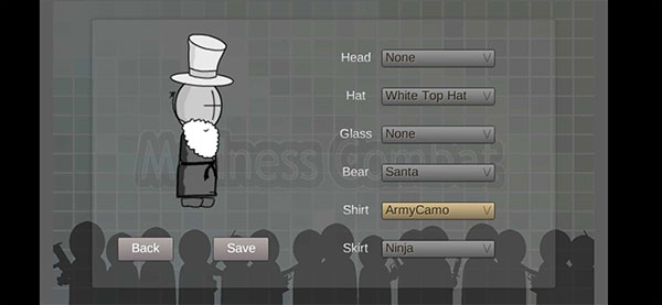 2、选择右侧的head、hat、glass、shirt等外观选项,自定义发型、眼镜、肤色以及衣服,完成后可以点击Save保存;
