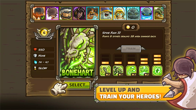 2、英雄养成玩法,召唤可全图移动的英雄,搭配防御塔作战,能够通过升级强化英雄战力。