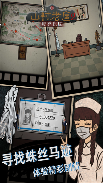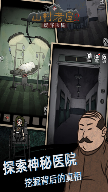 山村老屋2之废弃医院是一款暗黑悬疑风格的解谜冒险手游,你将在沉郁的手绘画面与压抑的氛围中醒来,发现自己被困在弥漫着消毒水与铁锈味的病房里,周围空无一人,只有墙上泛黄的病历与角落里散落的医疗器械暗示着这里曾经的喧嚣。医院的每个角落都透着诡异,你需要在这些场景中寻找隐藏的线索,解开环环相扣的谜题,一步步拼凑出医院被遗弃的真相,以及自己为何会被困于此的过往。游戏延续了前作的悬疑解谜体验,同时融入了更具深度的情感剧情。