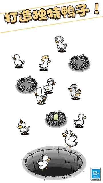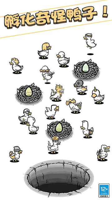 奇怪的鸭子是一款画风清新、玩法魔性的休闲放置手游,带你进入一个充满脑洞的鸭子养成世界。游戏开局你将从一枚孤零零的鸭蛋开始,通过点击孵化出第一只小鸭,随着不断孵化与变异,鸭群会呈现出千奇百怪的形态。当鸭群壮大后,你可以将它们送入神秘洞穴,触发更夸张的基因重组,解锁拥有意识般诡异行为的究极鸭子。在轻松的背景音乐与简约的黑白画风中,你将体验到从一枚蛋到鸭鸭军团的魔性养成乐趣,感受基因变异带来的无限惊喜。