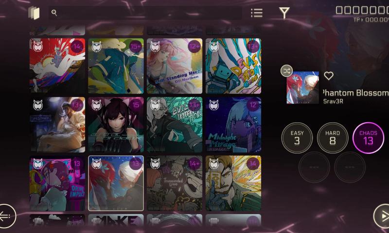 进入游戏界面之后,眼前会出现一些游戏角色,他们各有特色,有点类似于黑客帝国,充满了指令,解锁等元素。点开第一位小姐姐的角色卡之后,画面会出现一个氛围渲染很棒的演唱会,这个主角当然就是她了,界面下面有三个难度的曲子给大家选择,也是需要一步一步解锁的,默认只有两个难度可以选择,不仅如此还可以靠屏幕两端的按键进行曲目的选择。