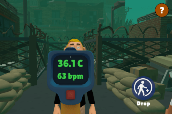 1、进入边境丧尸检察官游戏后,拿起旁边的体温枪。