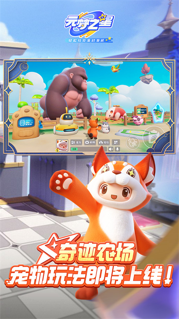 元梦之星是一款Q版卡通风格的多人轻竞技派对手游,玩家将化身穿动物玩偶服的星宝,进入充满童趣的乐园场景。既可在广场与好友贴贴互动、搭乘旋转木马/热气球等休闲设施,享受松弛的社交时光。也能挑战海陆空主题的趣味关卡,在滑道、空中管道、石阵等机关中躲避障碍,用香蕉皮等搞怪道具干扰对手,冲向通关终点。还能参与萌趣激斗对决,用拳击、加速等基础技能完成对手淘汰。整体以软萌的角色形象、轻松的玩法节奏,传递出欢乐治愈的休闲氛围。